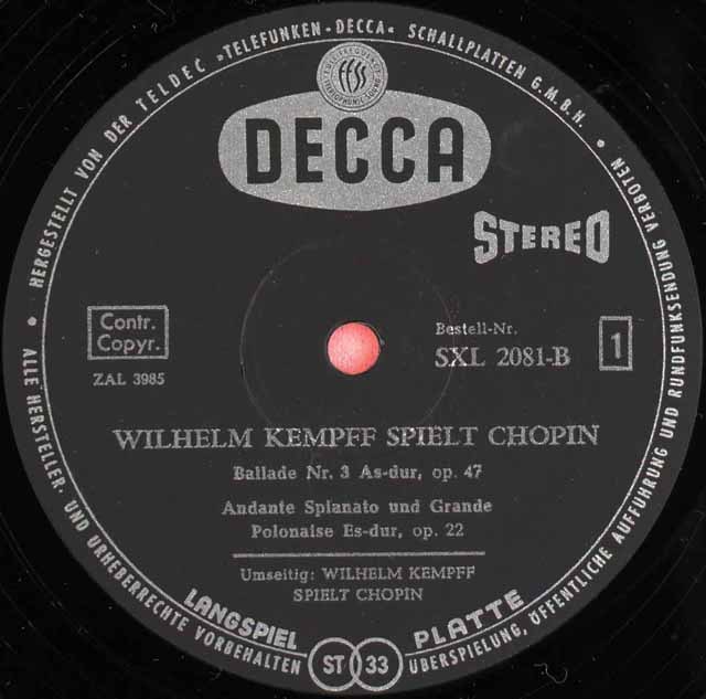 【独最初期盤】ケンプのショパン vol.1