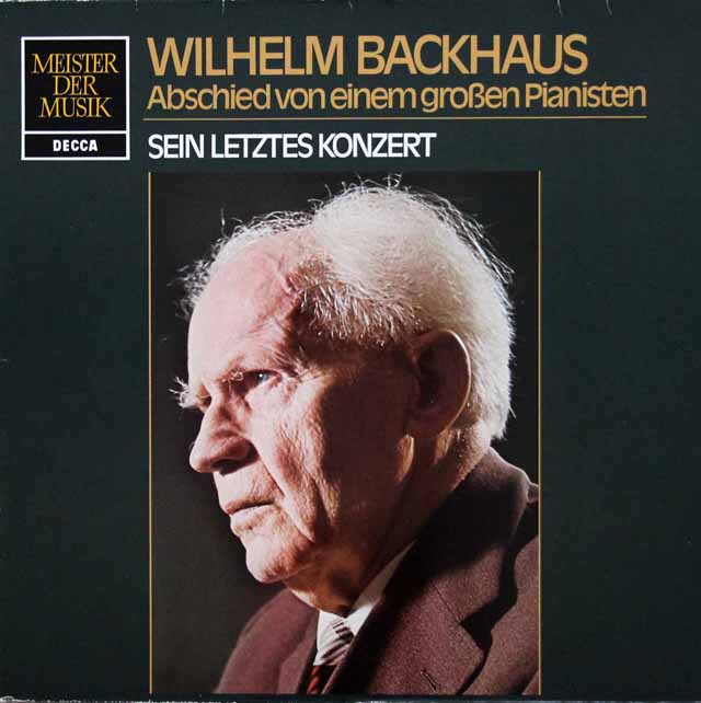 バックハウスは、1969年6月28日の演奏会でベートーヴェンのピアノソナタを弾いている途中に心臓発作を起こし、7日後に死去。演奏会は一度中断し、曲目を変更して最後まで行われましたが、その際の本人のコメントも録音されています。イギリスでの発売はなく、ドイツと日本のみの発売です。