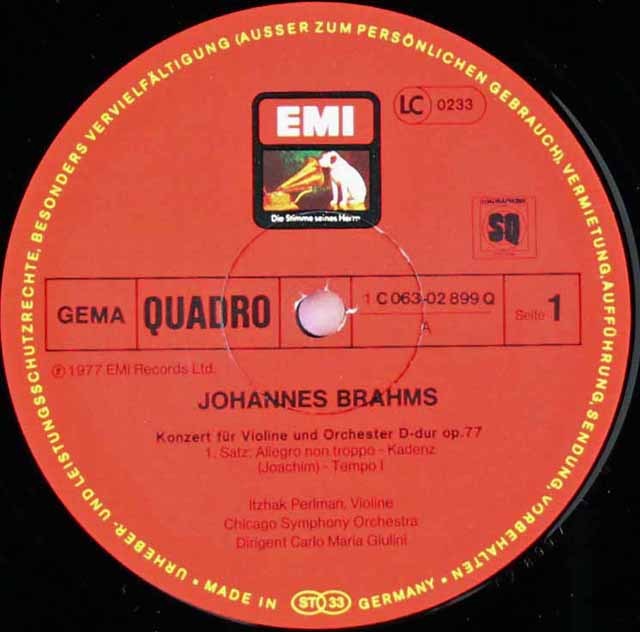 パールマン、ジュリーニのブラームス/ヴァイオリン協奏曲