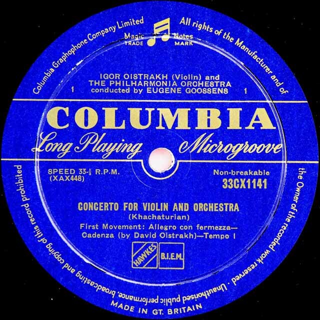 イーゴリ・オイストラフのハチャトゥリアン/ヴァイオリン協奏曲