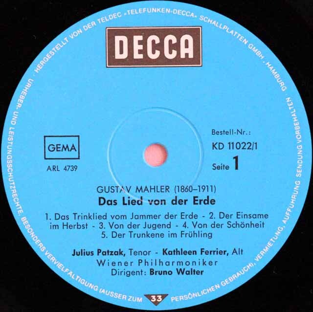 ワルター、フェリアのマーラー/「大地の歌」ほか