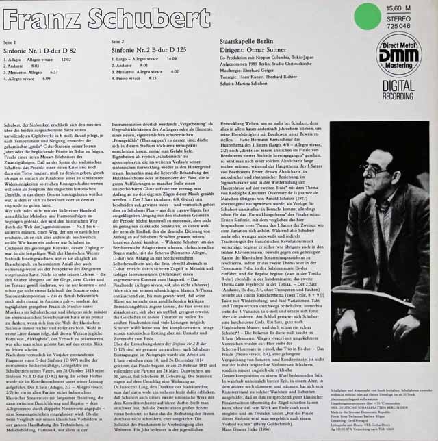 スウィトナーのシューベルト/交響曲第1、2番