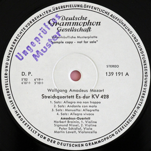 レーベル 白レーベル(テストプレス) A面に「Ungeprueftes Muster」(未承認マスター盤)のゴム印あり。