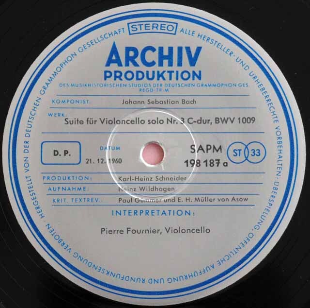 フルニエのバッハ/無伴奏チェロ組曲第3、4番