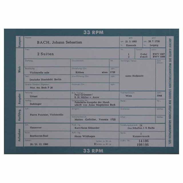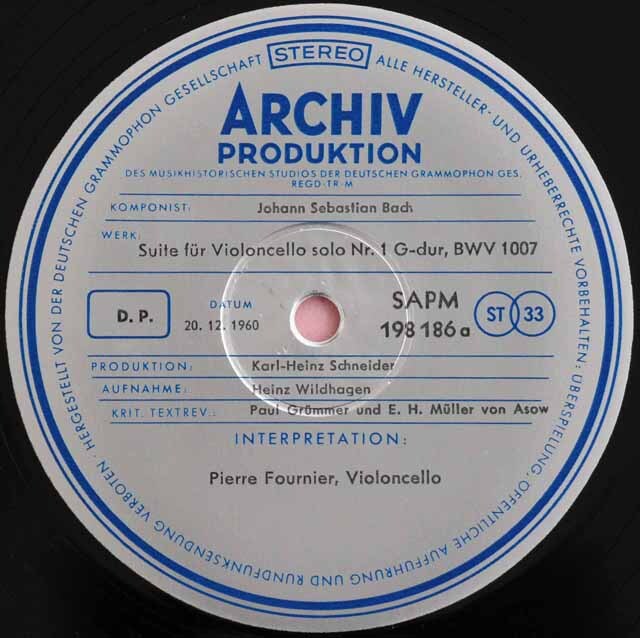 フルニエのバッハ/無伴奏チェロ組曲第1、2番