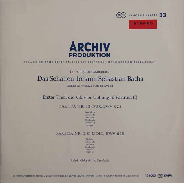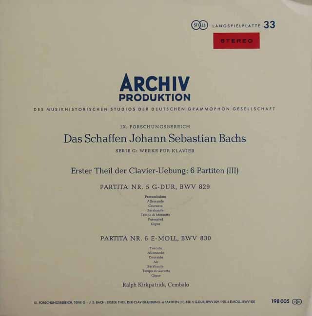 カークパトリックのバッハ/6つのパルティータ