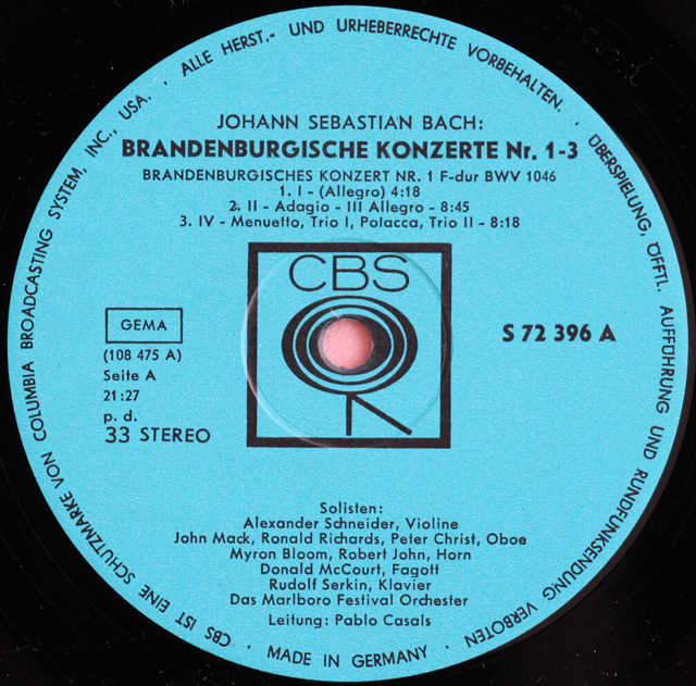 カザルスのバッハ/ブランデンブルク協奏曲全曲