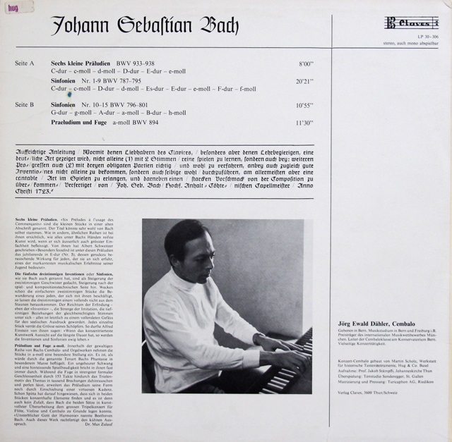 デーラーのバッハ/6つの小前奏曲、シンフォニア第10~15番