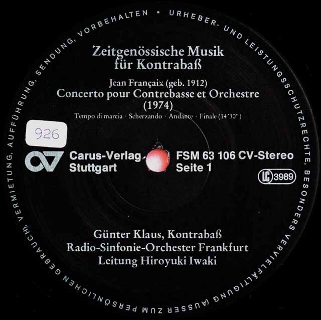 G.クラウス、岩城らのフランセ/コントラバス協奏曲ほか