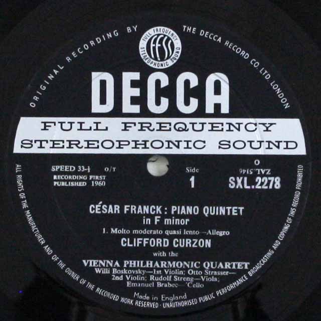 カーゾン、ウィーンフィル四重奏団のフランク/ピアノ五重奏曲