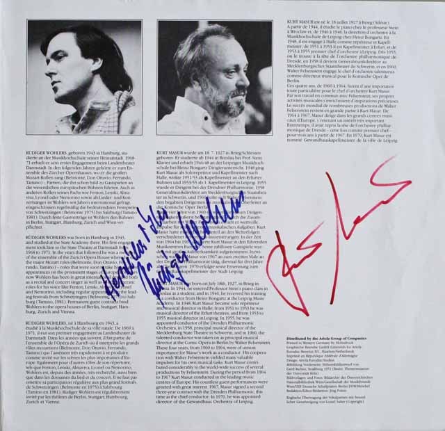 また、このLPの解説書には、マズアやアダムら7人の直筆のサインが入っています。