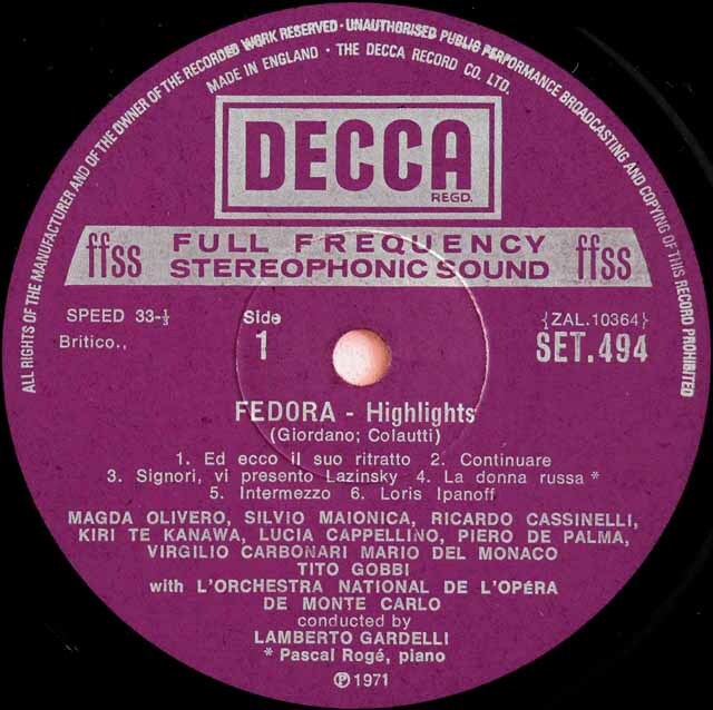 デル=モナコのジョルダーノ/ 歌劇「フェドーラ」抜粋