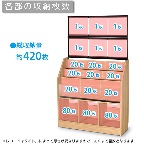 縦2列で、1枚もののLPの場合、約280枚(※)入ります