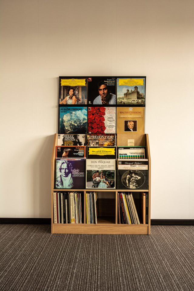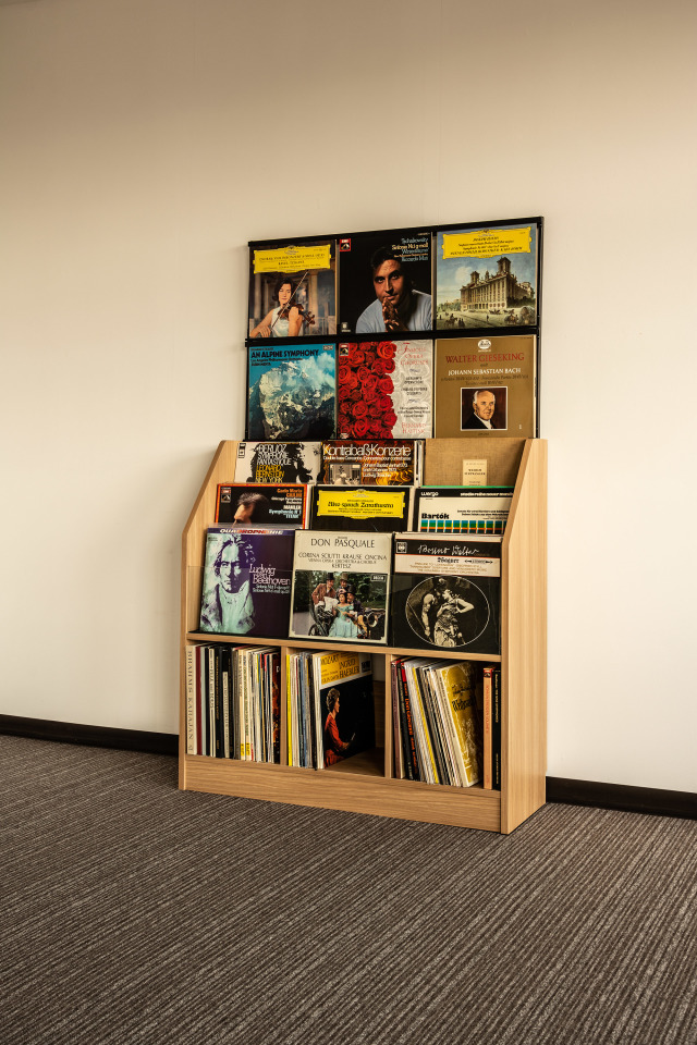 中段はいわゆる「エサ箱」で、まるでレコードショップにいるような感覚で、コレクションの中から、今日の一枚をワクワクしながら探し出すことが出来るのだ。(底部には、クッション材が貼られているため、ジャケットの「底抜け」のリスクも回避できるのがうれしい)下段は、通常のレコードラックの構成である。
