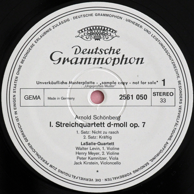 • 【白レーベル/非売品】 ラサール四重奏団のシェーンベルク/弦楽四重奏曲第1番 独DGG 3716 LP レコード