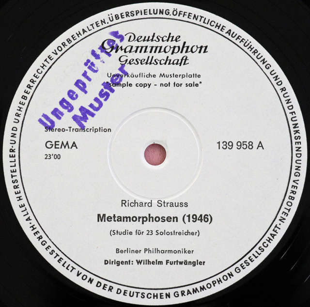 • 独未発売盤【白レーベル/非売品(テストプレス)/疑似ステレオ】 フルトヴェングラーのR.シュトラウス/「メタモルフォーゼン」(変容)ほか 独DGG 3728 LP レコード
